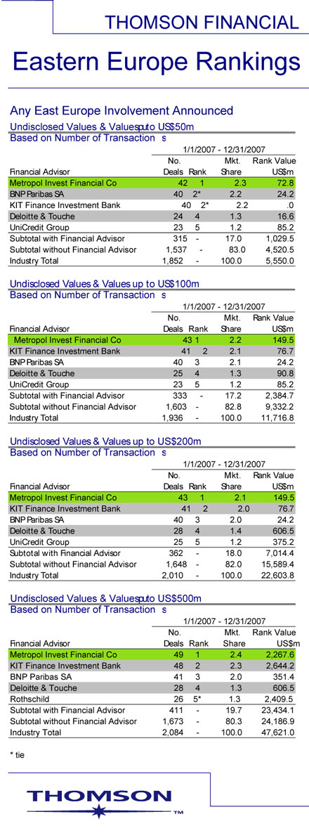 IFC METROPOL became the leader among the Russian financial consultants in M&A transactions